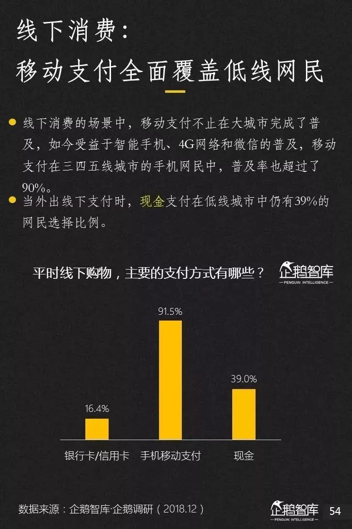 如果说时间的分配,决定了低线城市网民对互联网产品的投入度,那么金钱的分配,则决定了整个虛拟经济和实体经济在更广大的城市区域里,又怎样的流通前景。