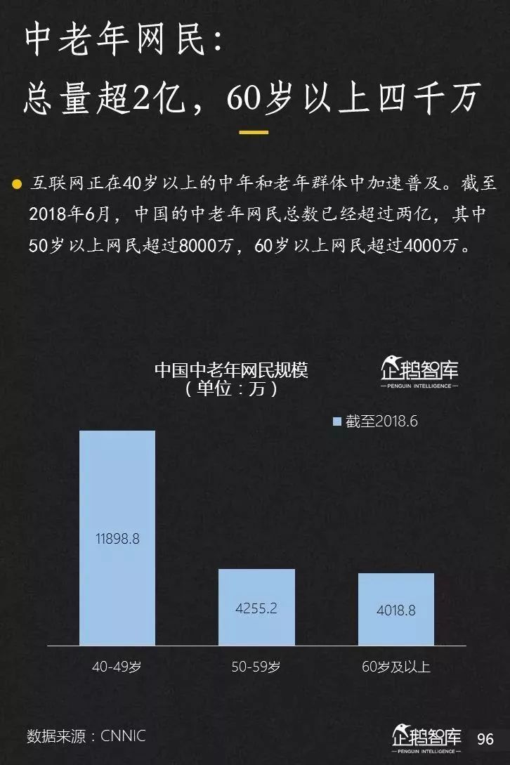 2、老年网民的增长比我们想象的更快,不论规模还是消费能力,他们都有可能成为未来红利中最大的一块;