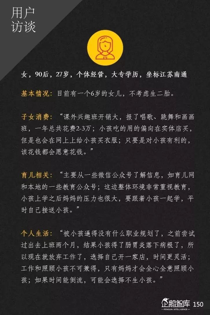 在消费方面,她们开始有计划的减少个人花销,这在服装和娱乐上尤为显著。同时,她们开始在孩子身上增加投资,并更习惯于从手机上获取最新的育儿和教育信息。来和孩子一起成长。