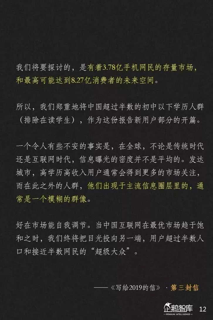 所以,我们郑重地将中国超过半数的初中以下学历人群,作为这份报告新用户部分的开篇。