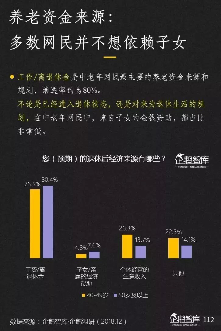 似乎,今天的中老年网民,不论物质还是精神上,都希望在退休后有更多自主的空间,这对整个市场来说,是一个利好的信号。