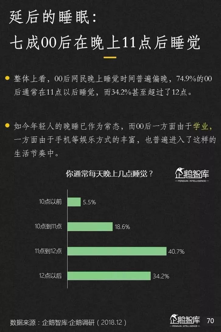 在20-40岁的成年人群体中,晚睡已经是一个社会现象。如今,年轻人的睡眠时间,也开始不断向午夜推延。