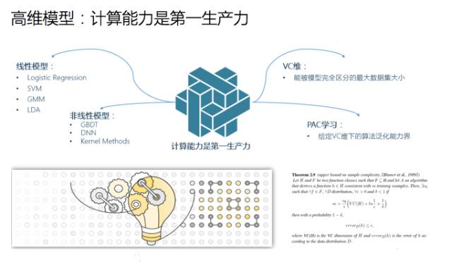 其次是模型规模。我们原先用统计的方式做模型,通常有十到二十个变量,现在用大数据、分布式的方式可以做到成百上千个变量。由于现在拥有海量的数据,所以足够支撑一个上亿乃至数千亿规模的维度变量,这就需要极高维度、分布式的机器学习系统。