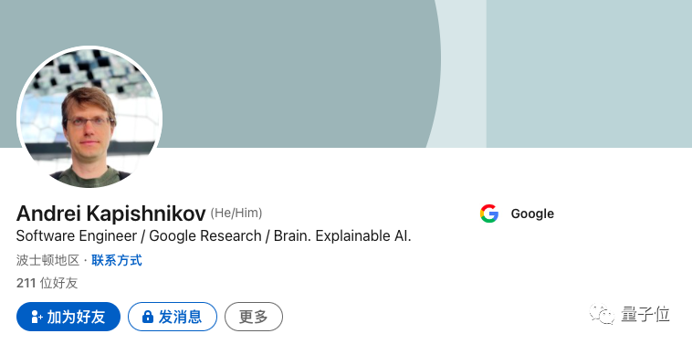 二作Andrei Kapishnikov,来自Google Brain,主攻人工智能应用领域,早前曾在VMware及Oracle从事技术工作。