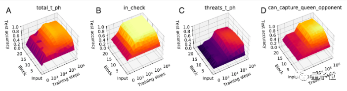 为研究AlphaZero如何「学习」的,研究者构建了一个人类理解国际象棋的函数c(z0)。其中,z0为一个象棋特定排布概念,c(z0)以专业国际象棋引擎Stockfish 8评估分数作为参考。