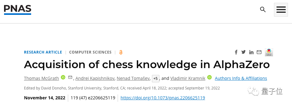 这两天,DeepMind及谷歌大脑一篇文章被《美国国家科学院院刊》(PNAS)收录,其内容正是以5年前发布的AlphaZero为例,研究神经网络如何获取并理解国际象棋知识。