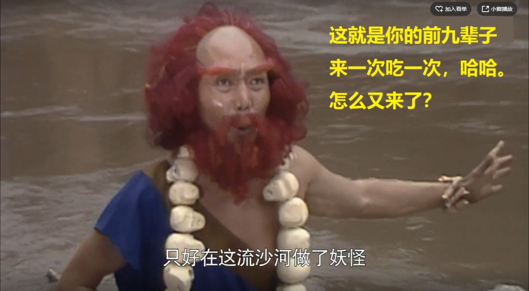 所以沙悟净脖子上这九个骷髅,是唐三藏的前九辈子,一旦吃了,就不断的重试。