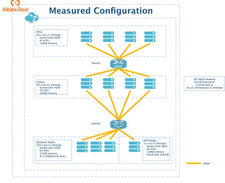 据技术团队透露,本次测试“OceanBase的数据库服务器使用的是204+3台型号是ecs.i2.16xlarge阿里云ECS服务器,其中204台作为datanode,还有3台作为root node” 。测试采用的服务器与生产系统完全一样。