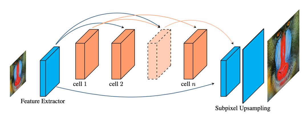 ▲ 图1:本研究采用的基础超分辨率神经架构(cell间的箭头表示跳接)