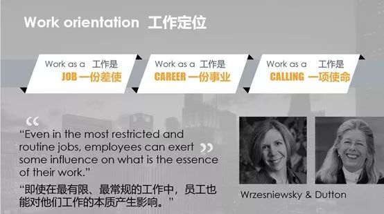 分别来自威斯康星大学和耶鲁大学的两位心理学家,通过对不同领域、不同岗位的工作进行大量调研后提出,人们对工作的态度可以分为三类:一份差使、一份事业、一项使命。