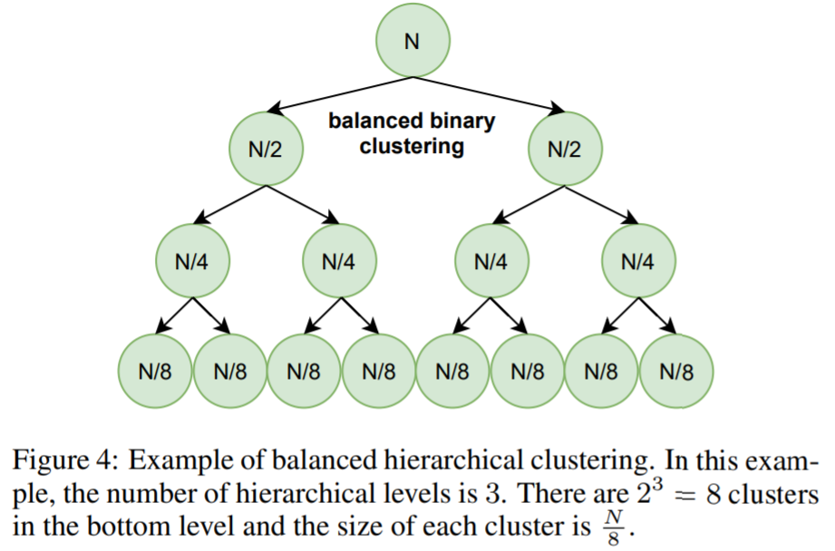 因此本文提出均衡层次聚类,它进行 k 层聚类。在每一层,它进行均衡二分聚类,将上一层的各个类组均衡地划分为两个更小的类组。如下图所示,所有 token 分成了 token 数量相同的 8 个类组,然后在每组内部计算自注意力,具体的自注意力参数和图像空间局部注意力保持一致。