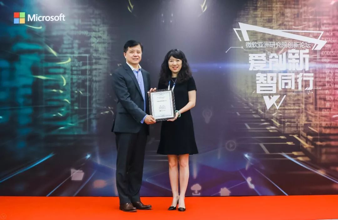 微软亚洲研究院院长洪小文为华夏基金总经理李一梅颁发创新汇会员证书