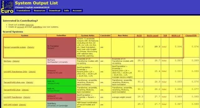WMT2018国际翻译大赛 腾讯翻译君获得中英翻译冠军