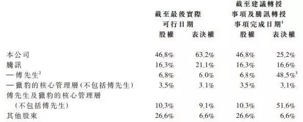 猎豹移动核心管理层一共将持有猎豹移动51.6%的投票权,金山软件持有猎豹移动的投票权将从46.8%降至25.2%,腾讯持有的投票权将从21.2%降至16.6%。