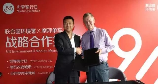 昨日,摩拜单车宣布与联合国环境署签订战略合作谅解备忘录,倡议发起首个世界骑行日,并在全球范围内推动可持续交通体系的发展,共同构建“零污染地球”。