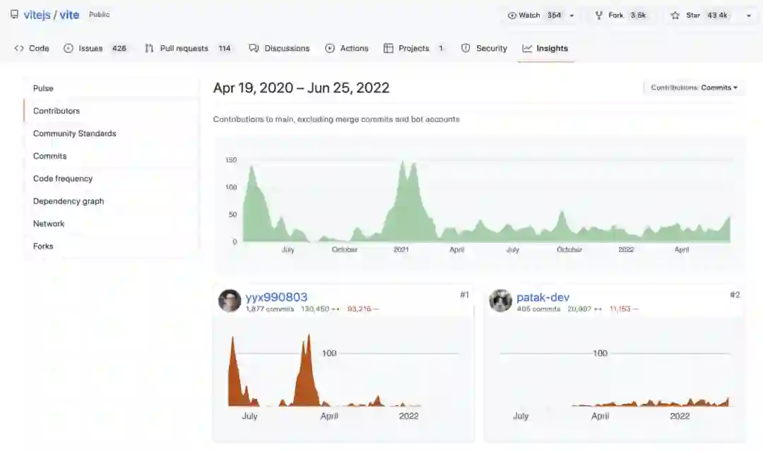而 Vue 最早是在 2014 年 2 月发布。尤雨溪表示,Vue 提取了 Angular 中自己喜欢的部分,然后构建出了这款相当轻量的框架。最早的版本发布在 Hacker News、Echo JS 与 Reddit 的 /r/javascript 版块,一天之内就登上了这三个网站的首页。现在,Vue 也是 Github 上最受欢迎的开源项目之一。
