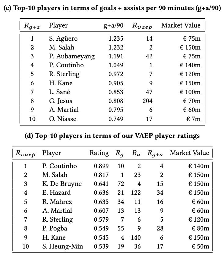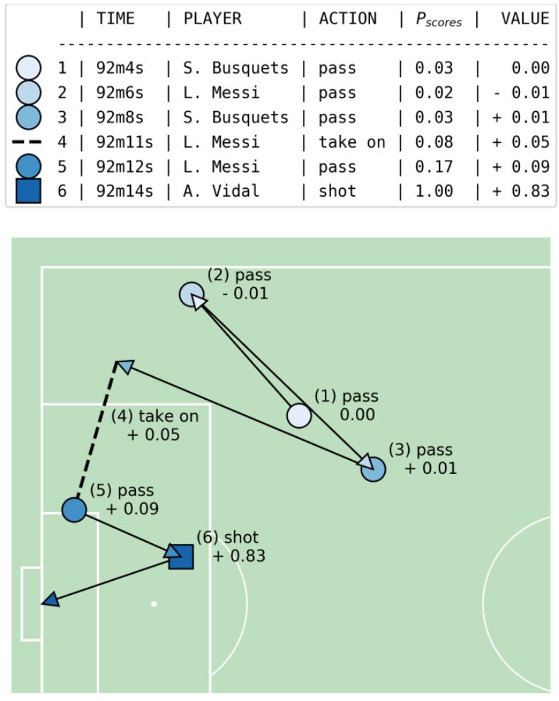 然而,大多数传统指标在解决此类任务时效果都不尽如人意,因为它们只关注整场比赛中仅有的几次特殊动作,比如射门和进球——而忽视了行动的背景。