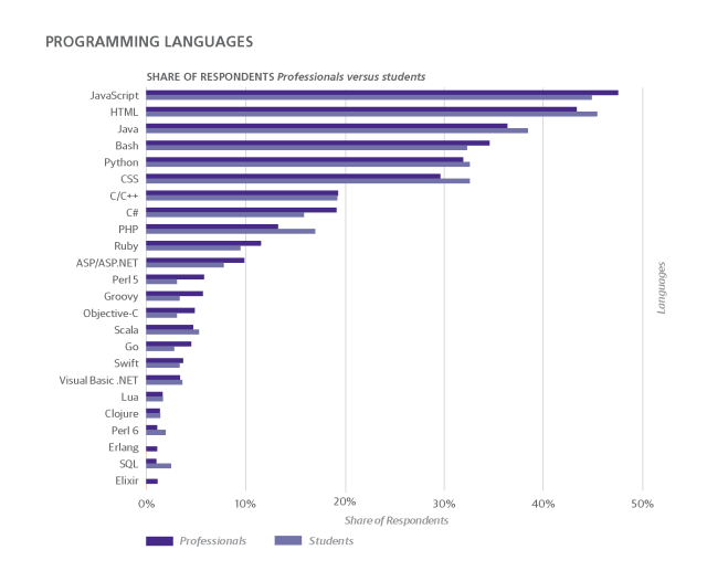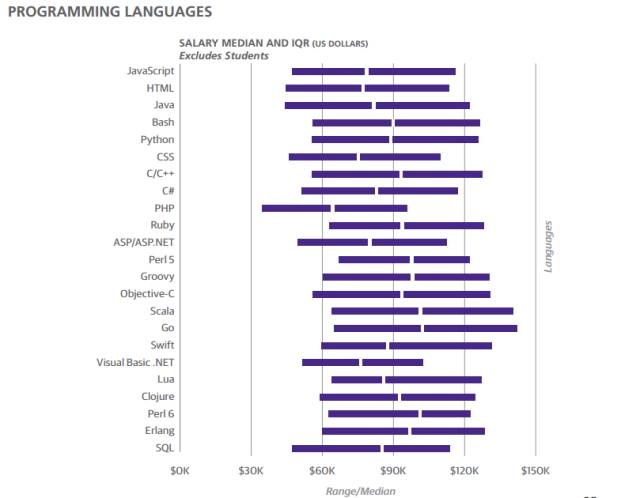 Go & Scala 是此次调查中最赚钱的语言,Ruby 语言的实力也是不容小觑,PHP 这次排在最后,出乎你意料吗?
