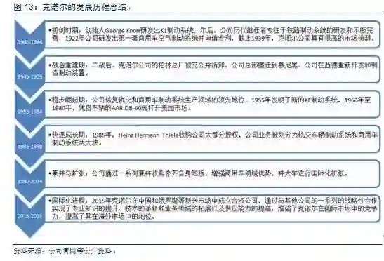 比如克诺尔的发展就搭上了欧洲轨道交通快速发展的高峰,跟随着行业的快速发展奠定了行业的龙头地位,后续才有通过国际化和业务多元化突破了天花板的机会。