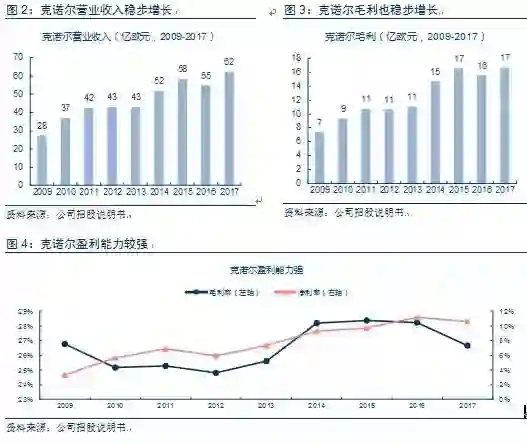 毛利年复合增长率也为11%;而净利润增长更为显著,2009-2017年复合增长率高达28%,2017年实现净利6.6亿欧元(折合人民币约51亿元)。