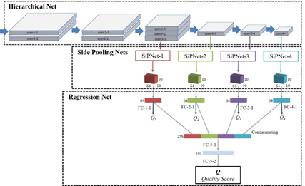 接下来,受人类视觉系统信息层级处理机制的启发,设计了一个层级特征融合的卷积神经网络用于度量层级质量衰减,完成无参考质量评价。在网络优化过程中,既考虑多层级融合后的预测分值损失,也考虑单层级的预测分值损失。通过层级联合优化(hierarchical-joint)和端到端(end-to-end)优化,论文网络可以充分从大数据中学习IQA的特性,完成对图像质量的有效预测。