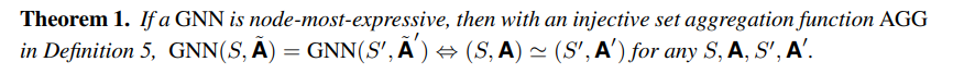 Theorem: 如果GNN学习两个图,学习到的表示一样,那么两个图同构,反过来也是。