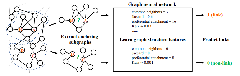 本次介绍的这三篇工作通过提取每个目标边周围的局部子图,学习一个函数从子图模式映射到边的存在性,从而自动学习适合于当前网络的“启发式”。