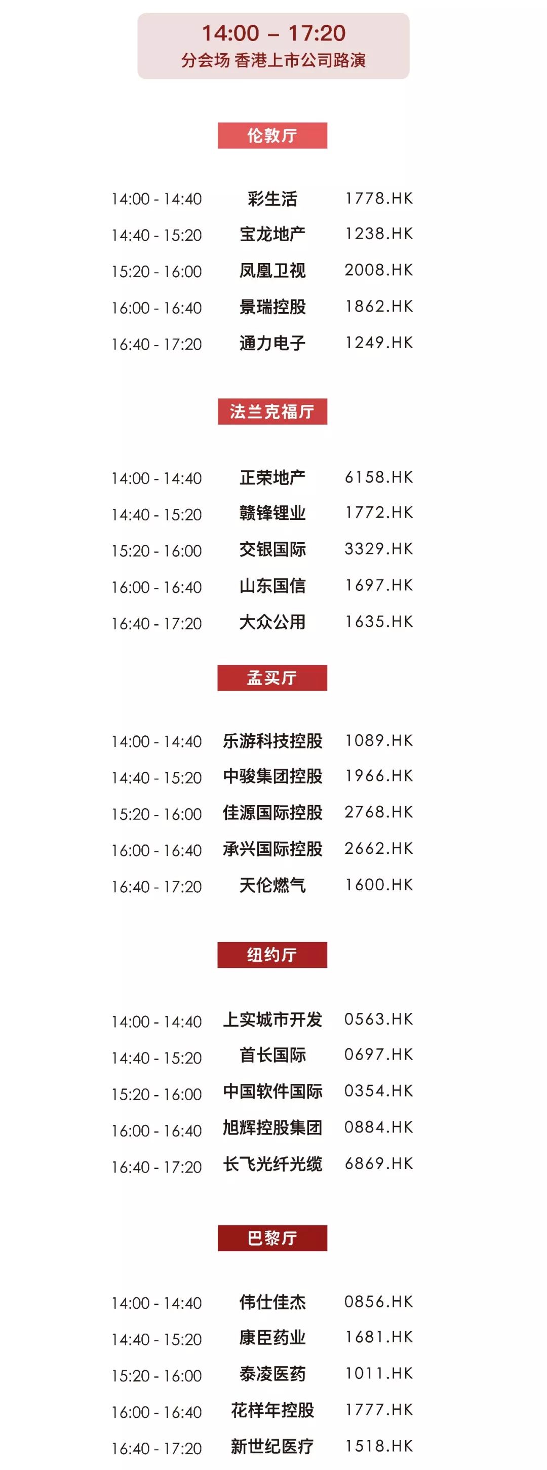 不仅如此,下午在各分会场还有25家优质港股上市公司进行路演,面对面与上市公司高层交流只一步之遥。