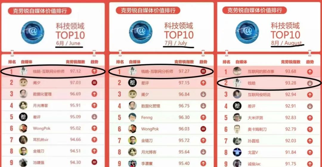 科技自媒体价值排行榜位列榜首