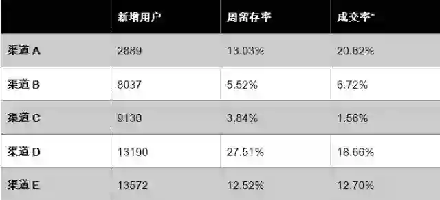 **此处渠道只列了5支较典型的渠道样本数据,实际渠道分布更多