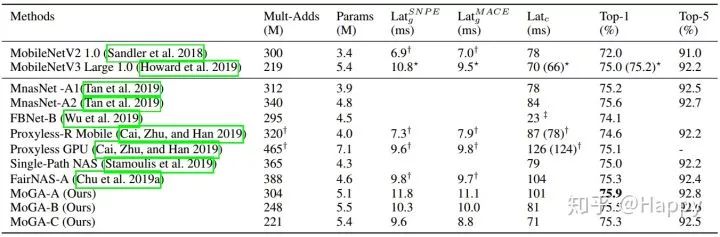MobileNet在手机端网络架构设计方面留下了浓重的一笔,其也是近来NAS搜索的一个baseline。然而,现有NAS方法大多以“低CPU延迟”作为主要优化目标。但实际上,“低GPU延迟”在实际手机端应用更具优势(现有主流手机基本都支持GPU),因而很有必要将NAS优化目标从“低CPU延迟”向“低GPU延迟”迁移。