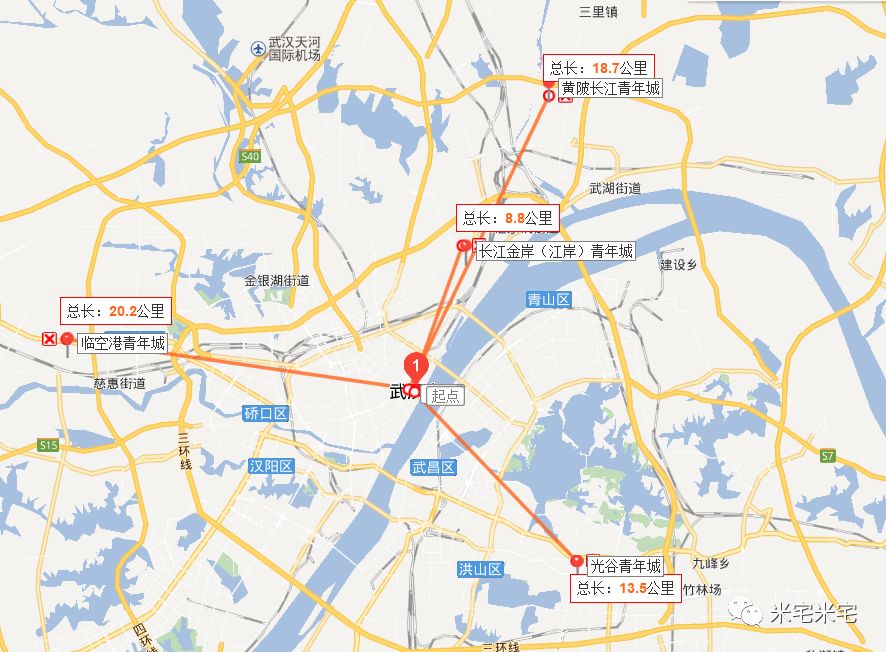 在某APP上搜了一下周边没有二手房,在百度地图上看了一下,临空港青年城四周均为产业园或物流园区,据武汉市政府20.2公里左右,开车时常1小时15分钟。
