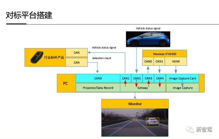 为了能够更为清晰找准自己的产品水准,Maxieye搭建了一个公正的对标平台。据周圣砚介绍:此次Maxieye的产品使用了行业标杆相同分辨率的CMOS(1280*720)、相近的镜头HFOV52度、算力相当的车规级ASIC芯片。