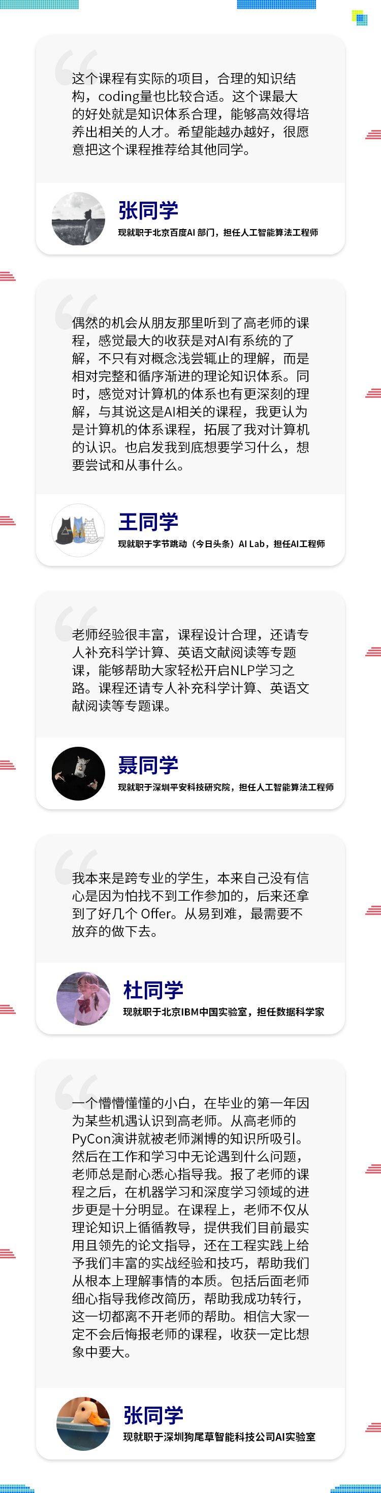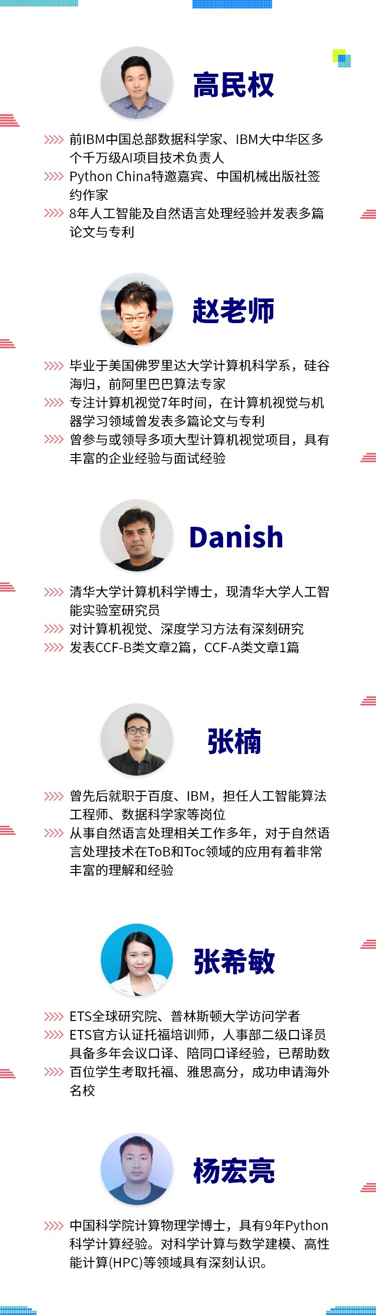 导师团队均为业界资深专家,人工智能算法专家高民权老师带队授课。与强者共事,才能更快的成就自我。