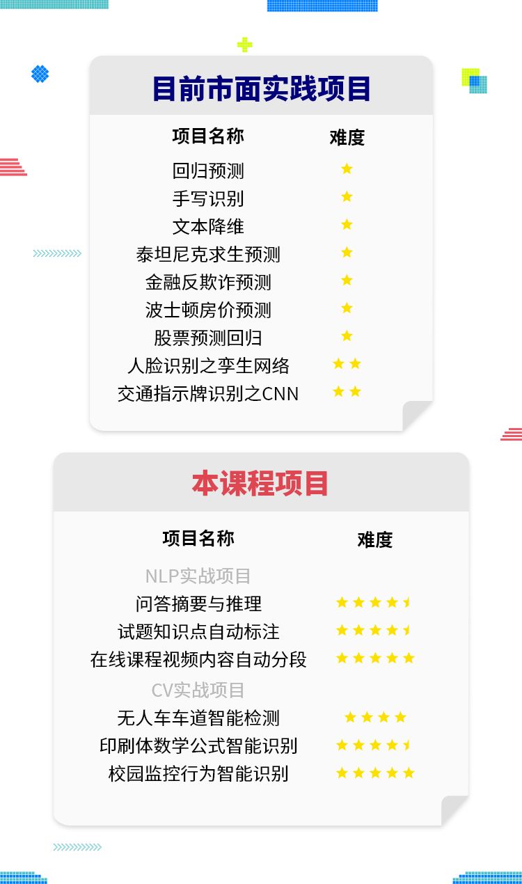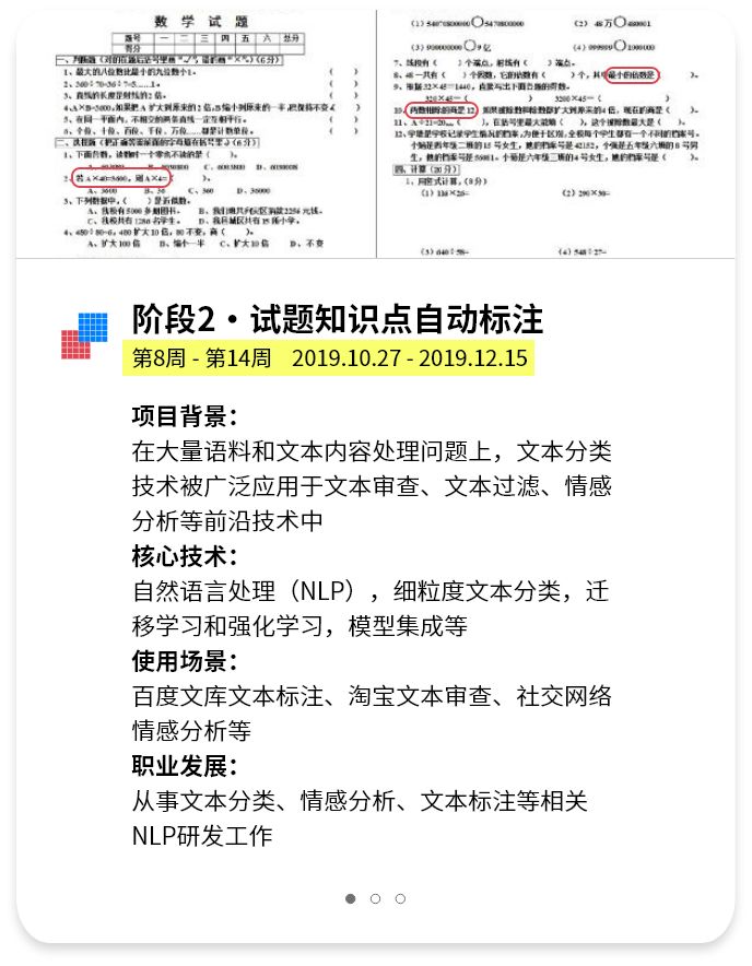百度飞桨团队和开课吧集结逾50人精英教研团队,历经200天,花费数百万,将6大项目开发为实践课程,拆解成24个纳米知识点和对应应用案例,让学员知其然亦知其所以然,并真正得到宝贵的实战经验。