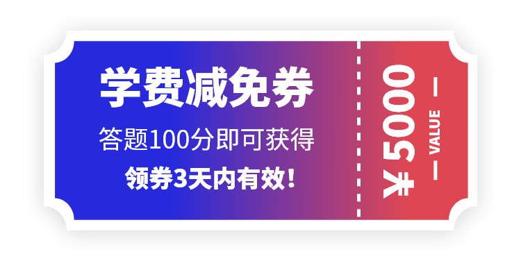 另外,如果不满足以上奖学金条件,自报名起3天内编程测试题达100分者可联系教务老师,领取5000元学费减免券(名额仅限前30位,此优惠券不可与奖学金同时使用)