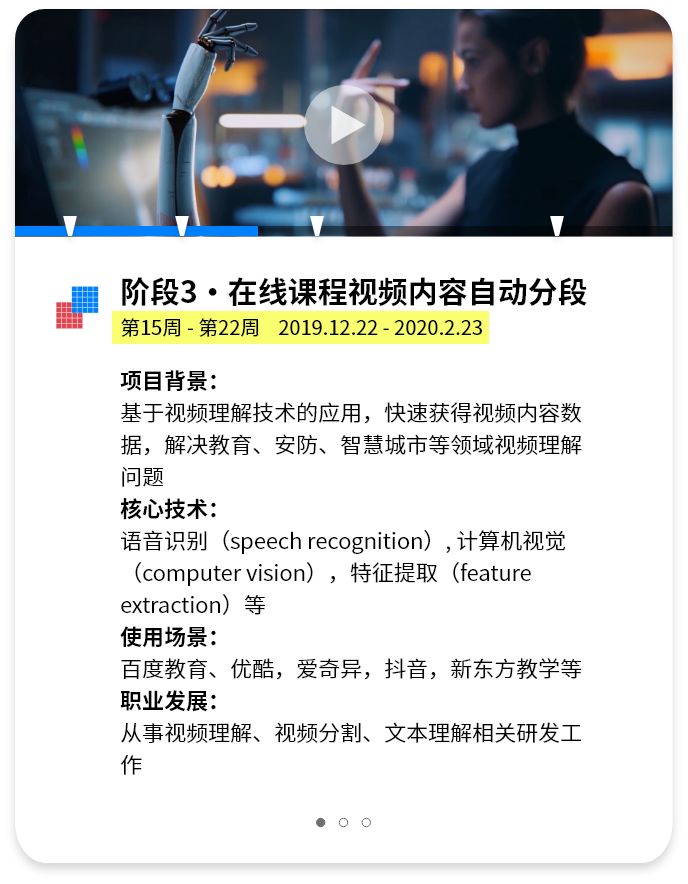 即使百度作为国内AI行业的领军者,但在AI项目中依然缺乏有实践经验具备可实际解决问题能力的AI工程师,为解决这一难题,百度飞桨与国内在线IT教育独角兽开课吧首次深度合作,联合设计本门课程,旨在培养具有核心竞争力的AI工程师。