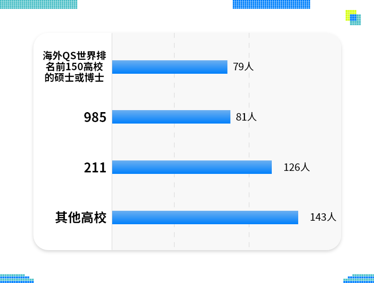 具有QS或US News世界排名前150名学校的硕士、博士学位或者正在攻读其硕士、博士学位的;