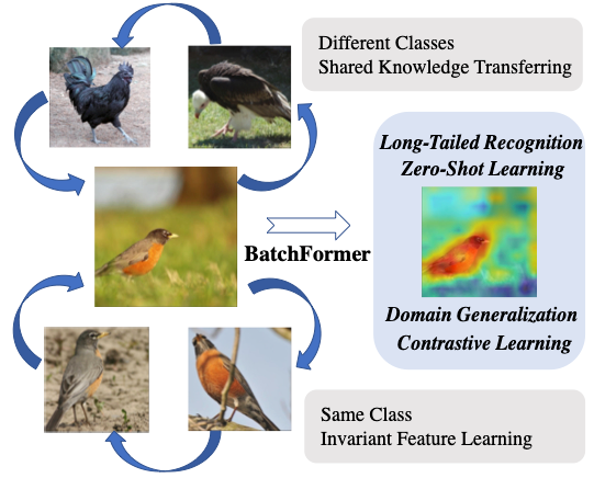 尽管深度神经网络取得了成功,但由于数据不平衡、零次分布和域偏移等数据稀缺性问题,深度表示学习仍然存在许多挑战。为了解决上述问题,人们设计了多种方法以普通的方式(即从输入或损失函数的角度)探索样本关系,没有用探索深度神经网络的内部结构来用于学习样本关系。受此启发,我们提出让深度神经网络本身能够从每个mini-batch 学习样本关系。具体来说,我们提出了Batch Transformer 或 BatchFormer,然后将其应用于batch维度,以在训练期间隐式探索样本关系。通过这样做,BatchFormer可以实现不同样本的协作,例如,头类样本也可以有助于尾类的学习以进行长尾识别。此外,为了缩小训练和测试之间的差距,我们在训练期间共享有或没有 BatchFormer 的分类器,因此可以在测试期间将其删除。我们对十多个数据集进行了广泛的实验,所提出的方法在不同的数据稀缺应用上实现了显着改进,包括长尾识别、组合零样本学习、域泛化和对比学习。