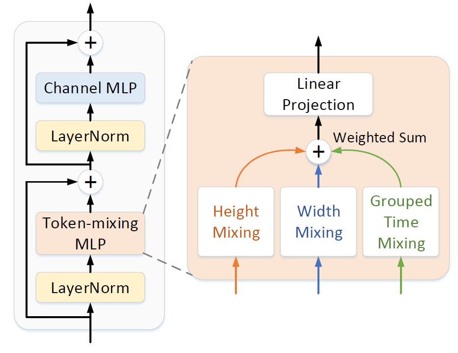 MLP-3D: A MLP-like 3D Architecture with Grouped Time Mixing