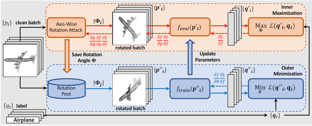 具有旋转鲁棒性的点云分类器的研究受到了三维深度学习社区的广泛关注。目前,大多数现有方法要么使用旋转不变描述符作为输入,要么尝试设计旋转等变网络。然而,由于这些方法对原始分类器或输入空间的修改,所生成的旋转稳健模型在干净对齐的数据集下的性能受损。在这项研究中,我们首次表明,点云分类器的旋转鲁棒性也可以在不影响模型结构的基础上,通过对抗训练获得,从而在旋转数据集和干净数据集上具有更好的性能。具体来说,我们提出的名为 ART-Point 的框架将点云的旋转视为一种攻击,并通过寻找具有强攻击性的旋转样本,并在该样本上训练分类器以提高旋转鲁棒性。我们提供了一种轴向旋转攻击,它使用预训练模型的反向传播梯度来有效地找到强攻击性旋转。为了避免模型对攻击性输入的过拟合,我们构建了旋转池,利用样本间对抗性旋转的可转移性来增加训练数据的多样性。此外,我们提出了一种快速的一步优化,以有效地达到最终的稳健模型。实验表明,我们提出的旋转攻击在常见点云模型上取得了很高的成功率,同时ART-Point 可用于大多数现有分类器以提高旋转鲁棒性,同时在干净的数据集上显示出比最先进方法更好的性能。