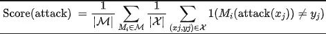 比赛主办方直接计算选手提交样本在后台模型上的攻击成功率来代表攻击性,这个值在0到1之间具体的计算公式为: