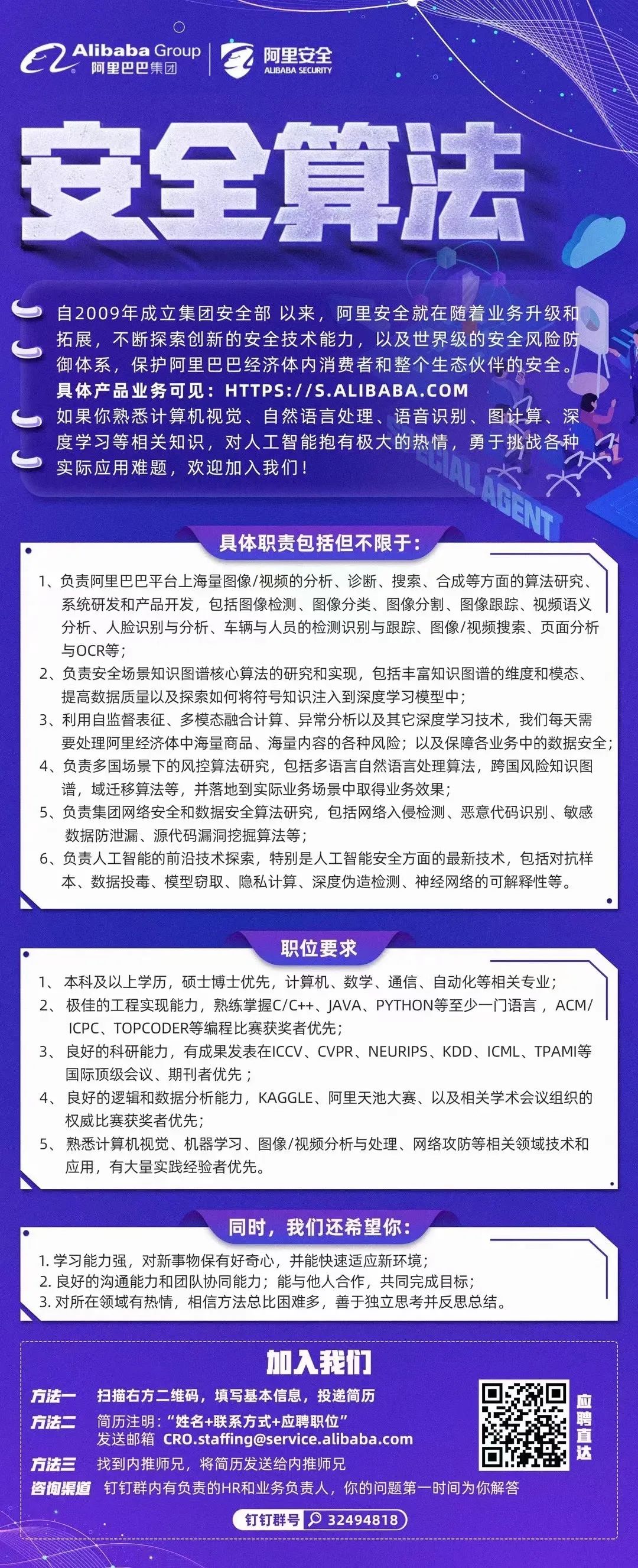 内推邮箱:yitong.yyt@alibaba-inc.com