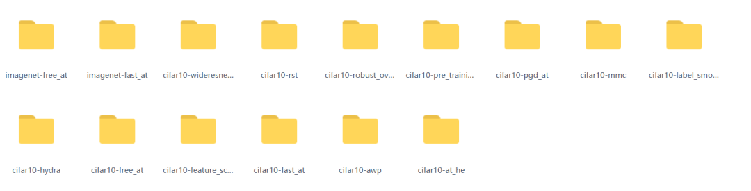 为了能够让大家更加方便的去获取模型我将这13个Cifar-10模型和2个Imagenet模型存放到百度云盘中。下载模型的链接和密码分别为: