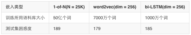 可以发现,“bi-LSTM”使用的训练数据是最少的,但它的性能却和比他多用了6倍训练数据的“word2vec”差不多,而“1-of-N”模型如果要达到同样的困惑度,它使用的训练数据得是“bi-LSTM”的5000倍以上。