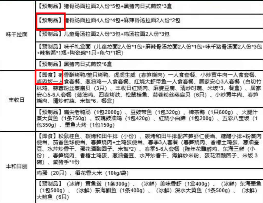 再者,除去冷冻品外,不少餐饮商家开启了自己的预制品推送,例如,味千拉面就推出了自己的预制品,包含猪骨汤拉面、麻辣骨汤拉面等菜品。