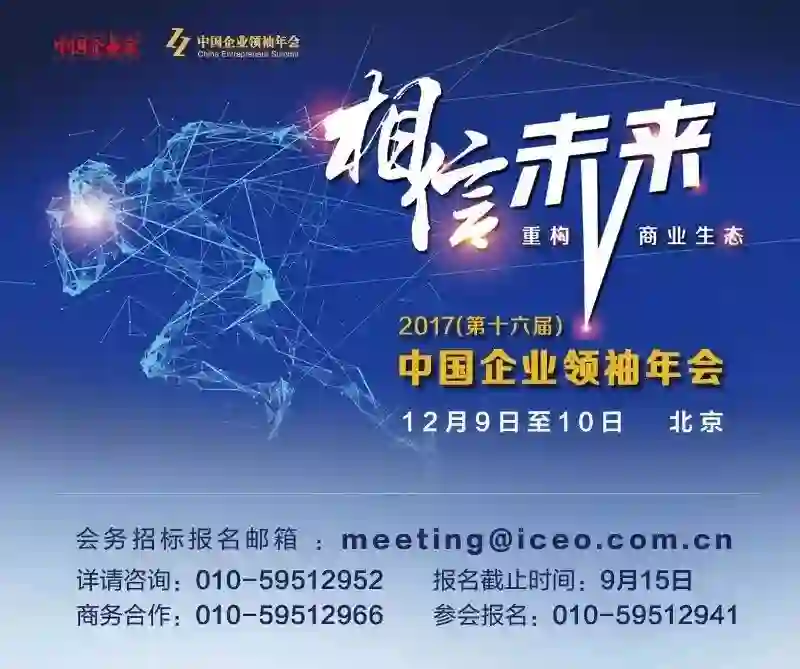 2017(第十六届)中国企业领袖年会会务招标已经启动(详情请戳:企业领袖大聚会,需要一个大舞台,你有好创意吗?),欢迎报名,资料请发邮箱:meeting@iceo.com.cn。点击下图可报名参会。