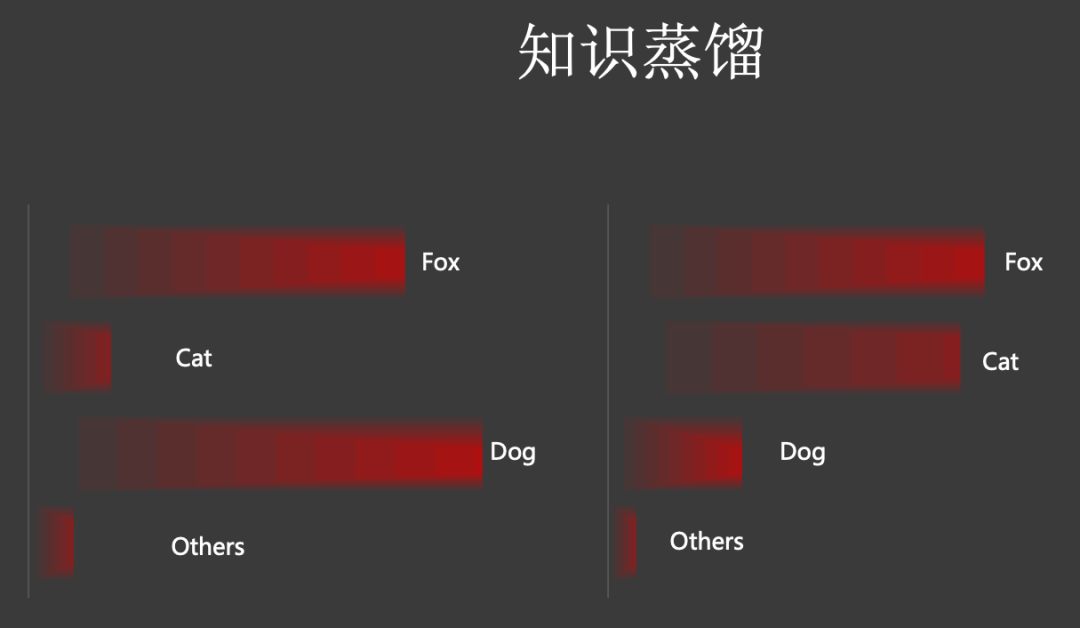 为了解决这个问题,华为提出了知识蒸馏的办法,通过预训练的模型,对AA的图片,产生软标签,再用软标签指导图形的训练。上图便是知识蒸馏后产生的软标签。