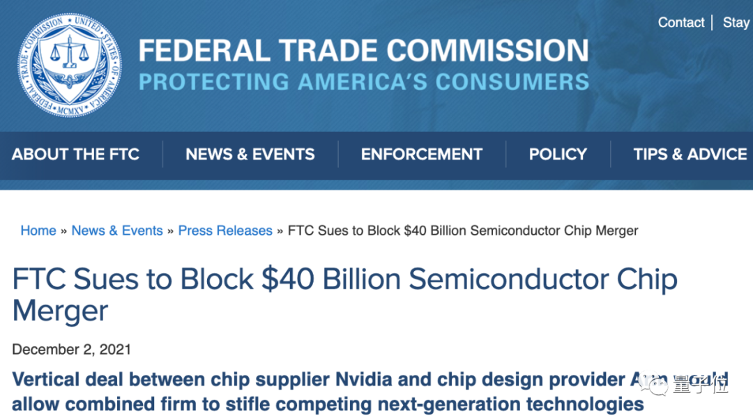 美国联邦贸易委员会(FTC)刚刚宣布,要起诉并阻止英伟达收购ARM公司。