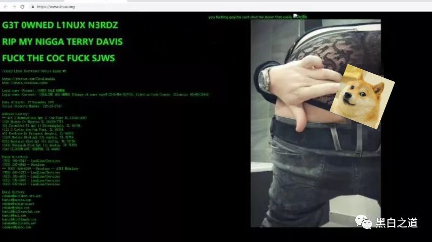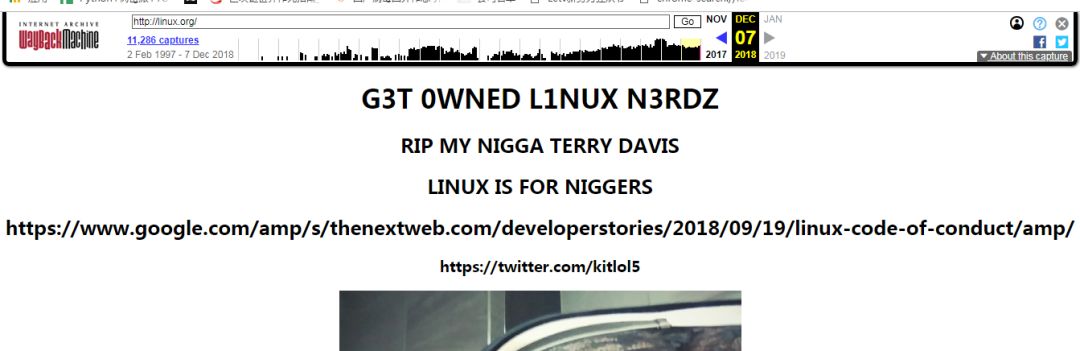 黑客不仅在网站留下了自己的社交媒体小号,还在页面上表达了对Linux新的行为准则和其贡献者盟约创作者Coraline Ada Ehmke的不满。